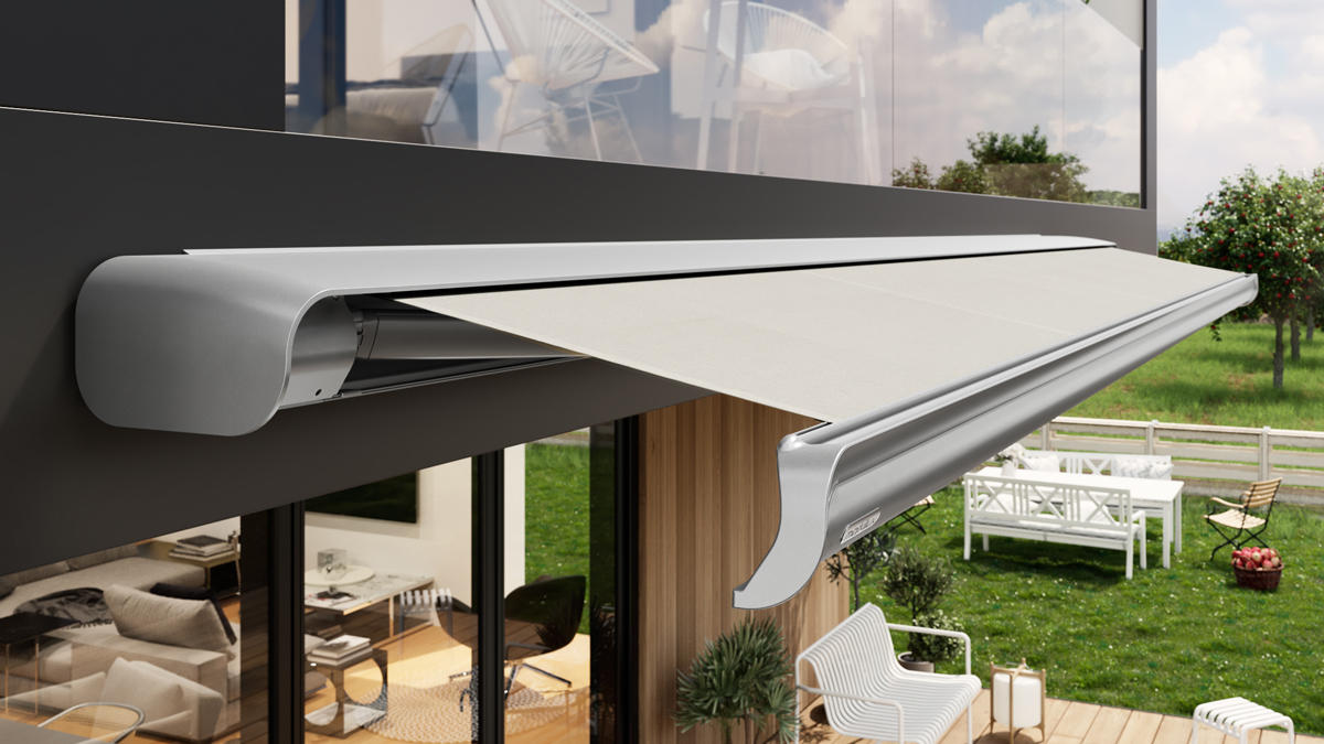 Die schlanke ovale Kassettenmarkise punktet mit Stabilität und Vielseitigkeit gerade bei großen Flächen.